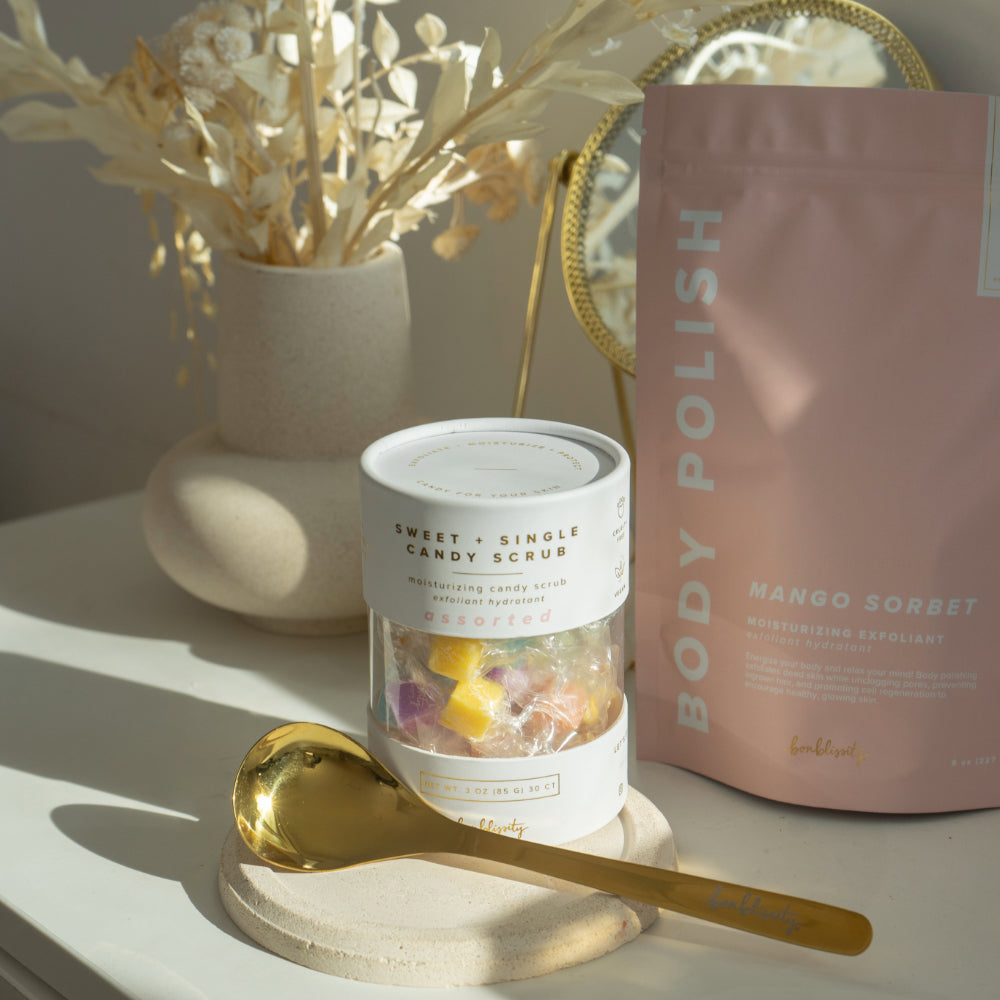 Our Multi-Use Mini Bombs are crafted with the same luxurious blend of butters and oils as our renowned Candy Scrubs, designed to enrich your bath with a lavish fizz of moisturizing extracts. Can be customized to use a Bath Bomb, Shower Bomb, or use as a Foot Soak.