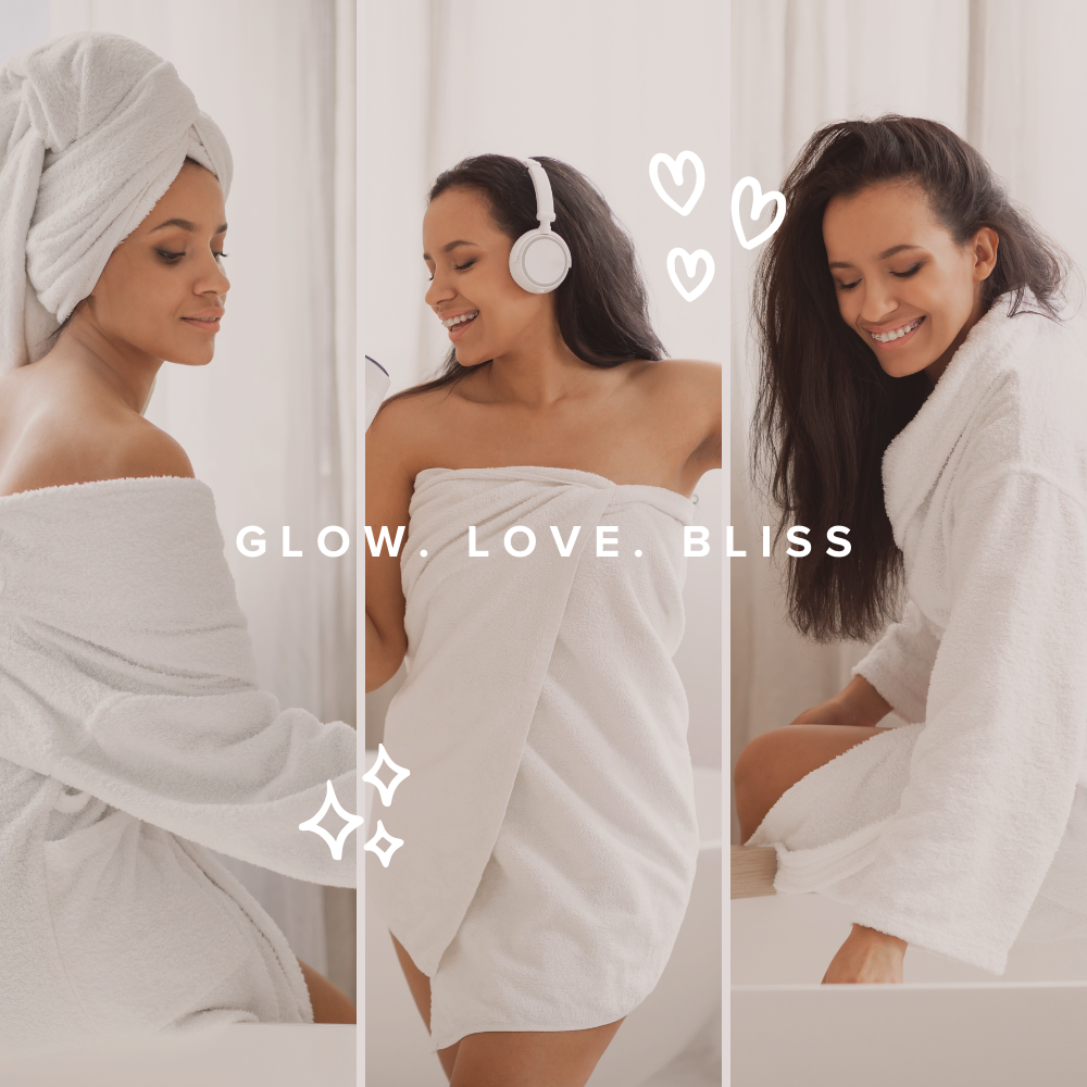 Self-care made simple, luxurious, and effortless. The Glow. Love. Bliss. Collection is designed to nourish your skin, uplift your spirit, and bring spa-like indulgence wherever you go.